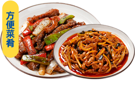 黑椒牛柳、魚香肉絲入鍋現(xiàn)炒